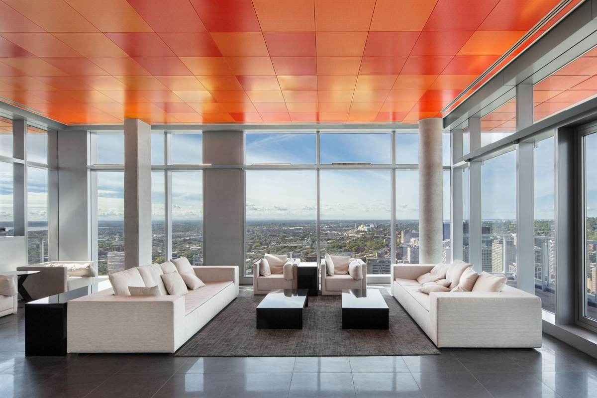 In each condo unit, Homesync worked with XACT to include: Intelligent Lighting Control, Smart Temperature Control, Recessed In-wall Audio, Common Area Entertainment